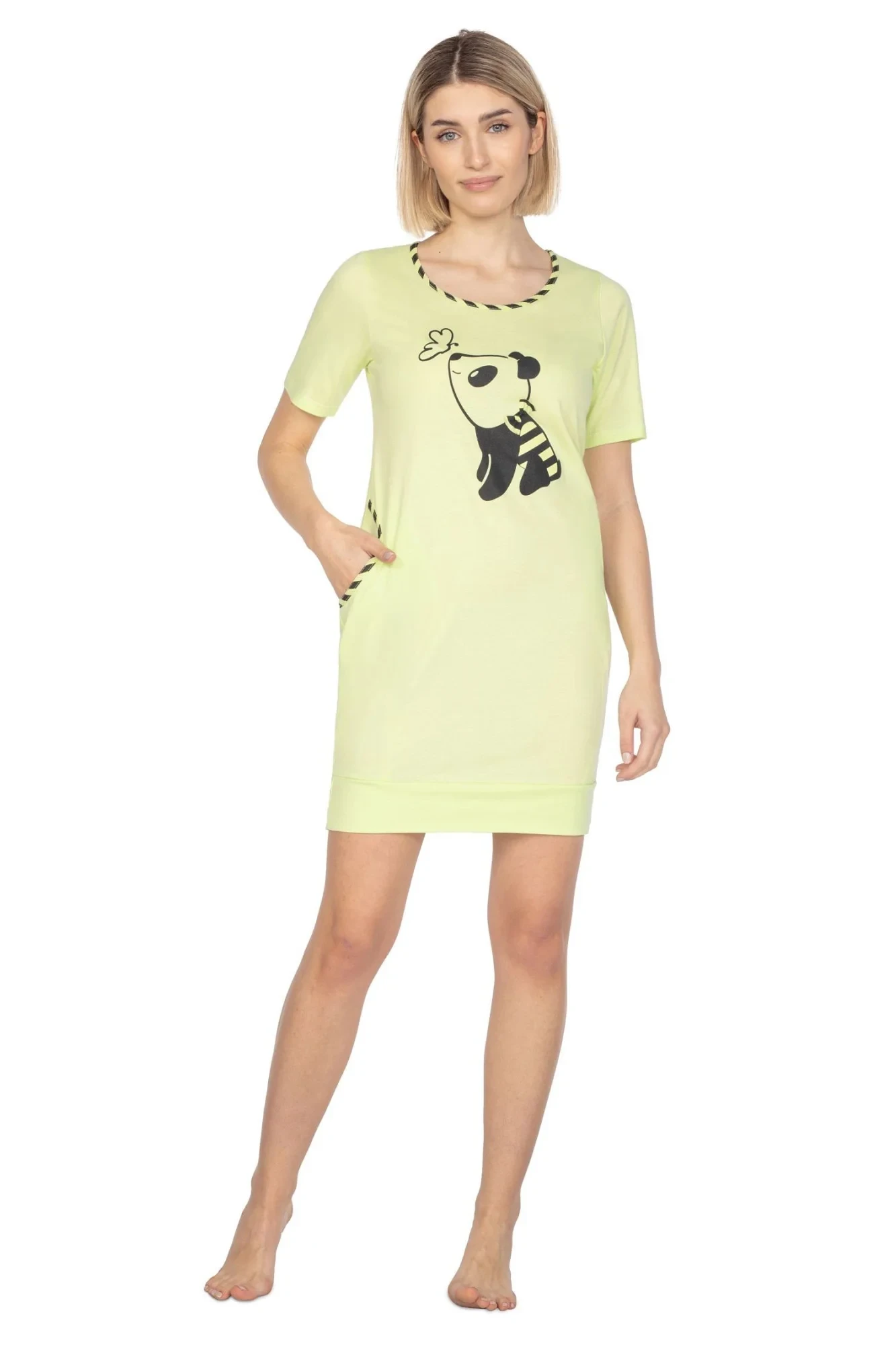 Noční košile 125 green plus REGINA - zelená barva - z vysoce jakostní bavlny - krátké rukávy - zdobená potiskem na přední straně - s kapsami