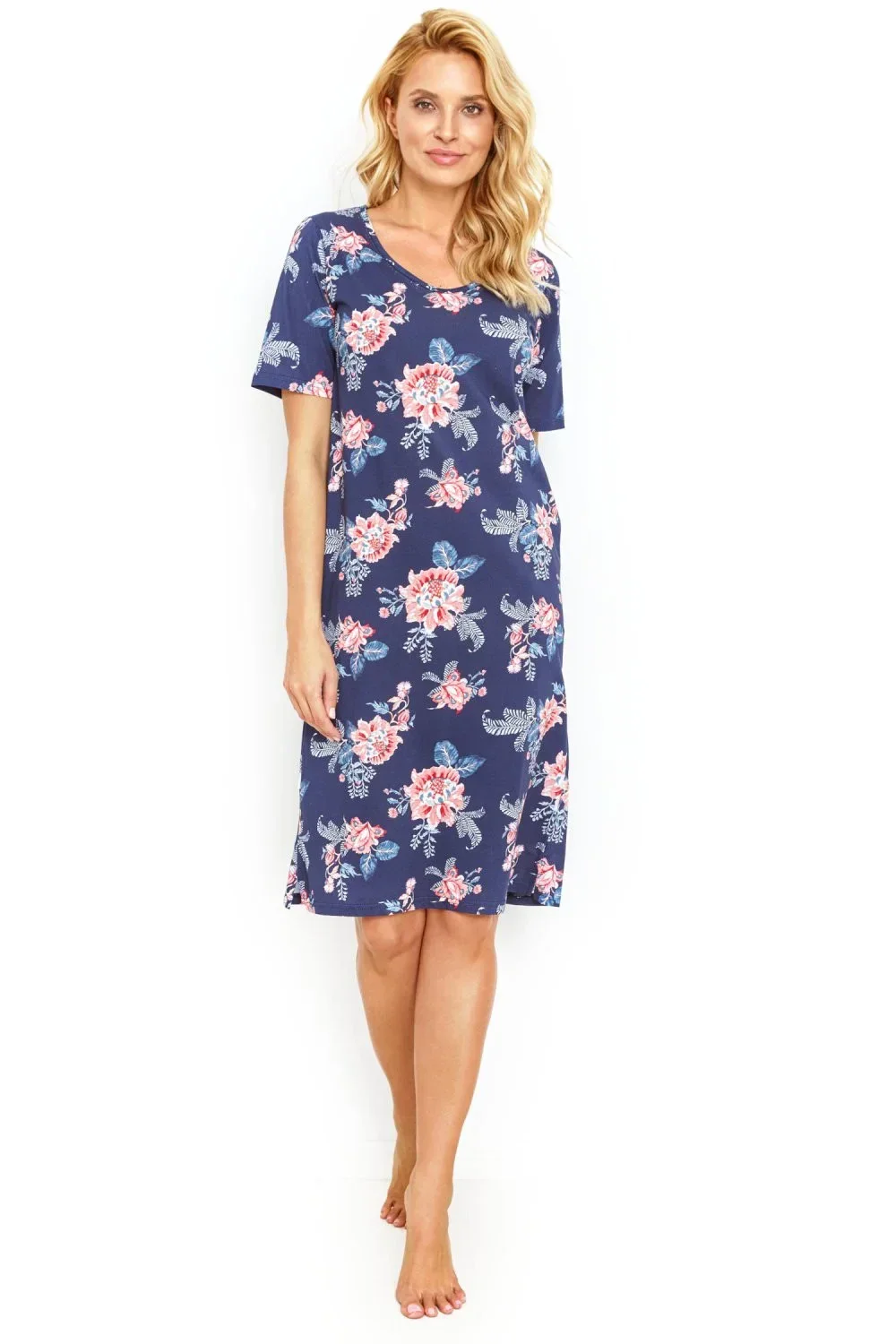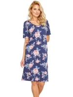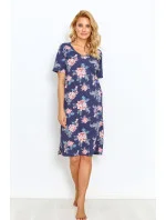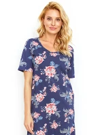 Dámská noční košile 2879 Ellie Taro - je vyrobená z velmi kvalitní bavlny - tmavě modrá barva s potiskem - s krátkými rukávy - délka nad kolena