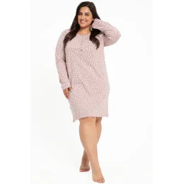 Noční košile 3007 Gabrielle TARO - růžová barva - je vyrobená z velmi kvalitní vzorované bavlny - s dlouhými rukávy - zdobená potiskem