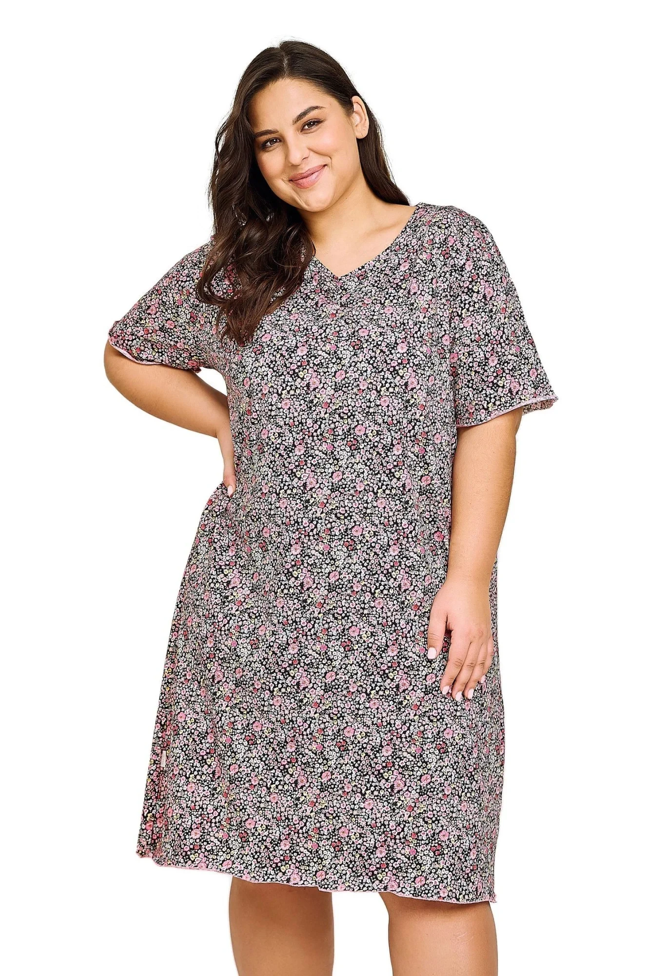 Noční košile 3170 Amora TARO - černá barva - z vysoce kvalitní bavlny - se vzorem - krátké rukávy