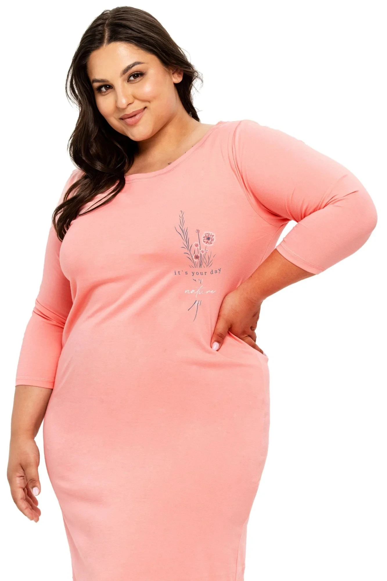 Noční košile 3267 Ashley TARO - růžová barva - z vysoce jakostní bavlny - na přední straně zdobená potiskem - tříčtvrteční rukávy - lemy rukávů a spodní části zakončené jemným řasením
