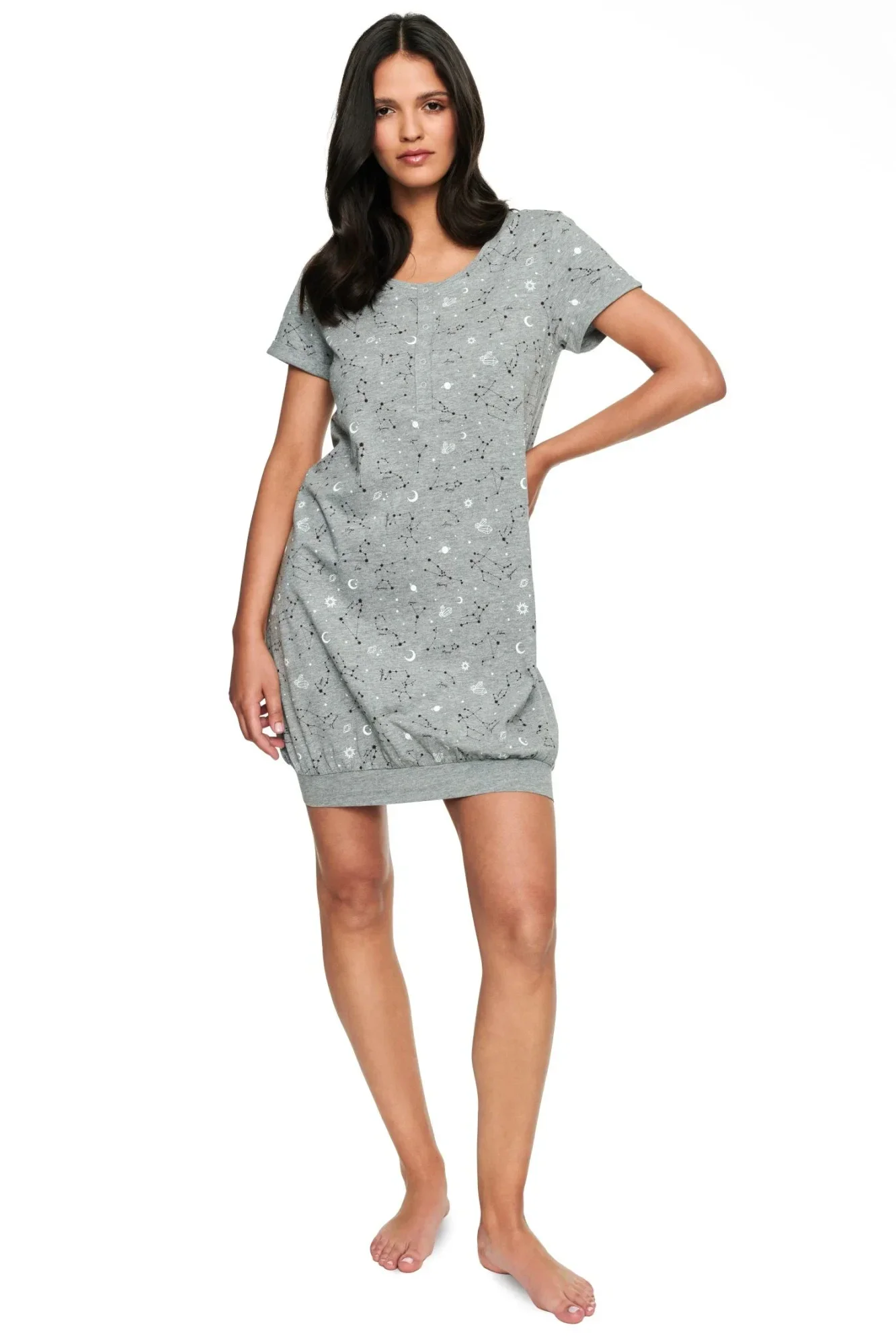 Noční košile 40116 Horoscope HENDERSON - šedá barva - z vysoce kvalitní a příjemné bavlny - krátké rukávy - se vzorem - spodní část lemována