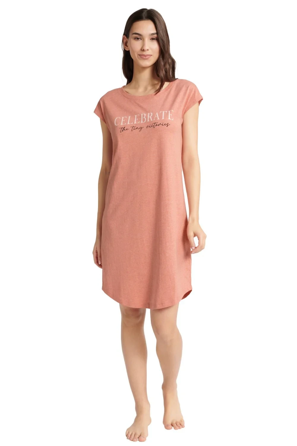 Dámská noční košile 40641 Bing Henderson - vyrobené z velmi kvalitní a příjemné bavlny - růžová barva - krátké rukávy - na přední straně potisk