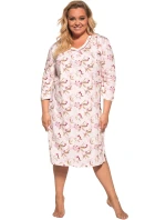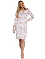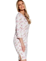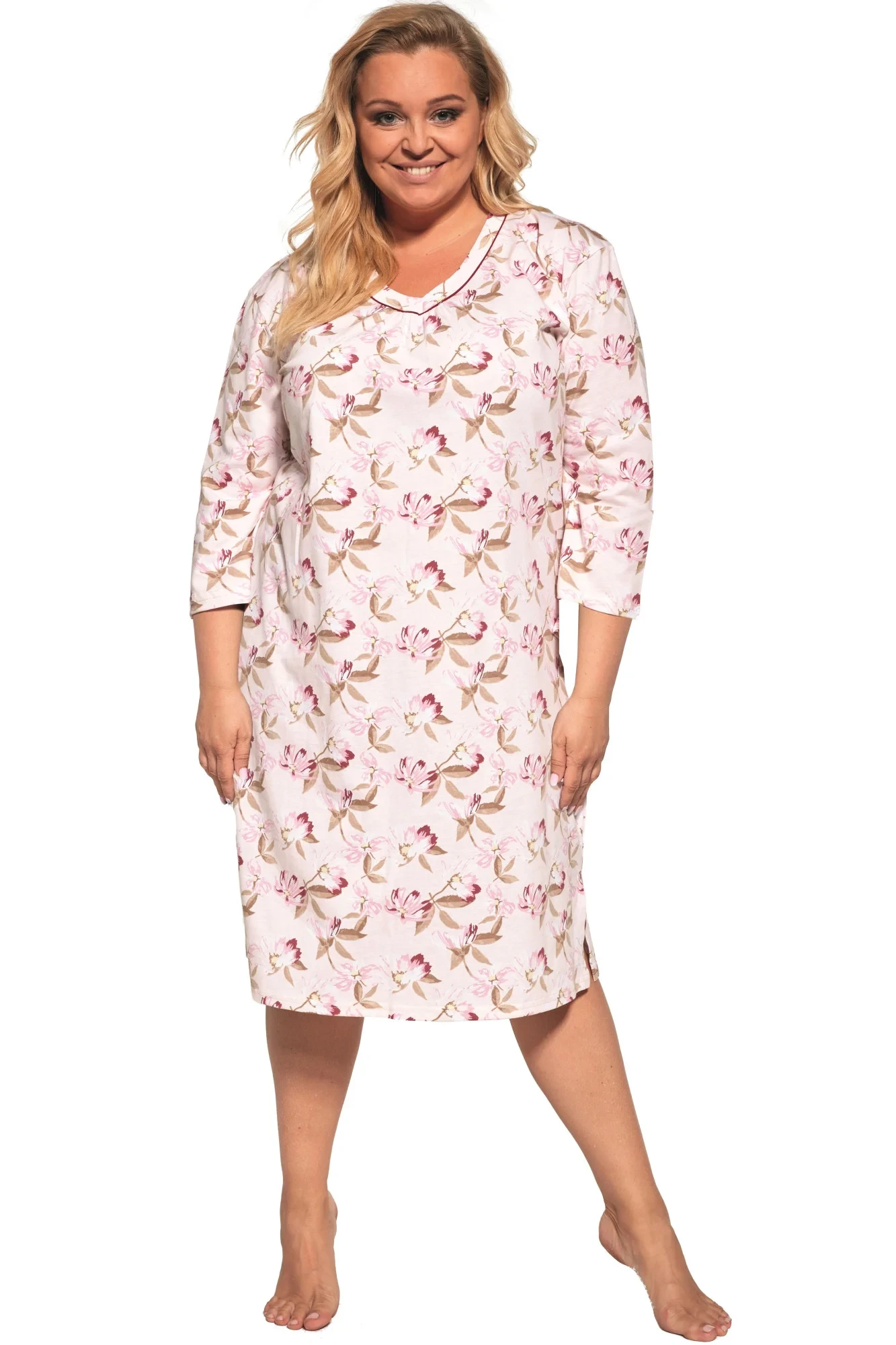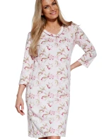 Noční košile 483/361 Adele 2 plus CORNETTE - růžová barva - vyrobeno z kvalitní bavlny - květinový vzor - výstřih do V - tříčtvrteční rukávy - délka nad kolena