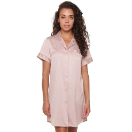 Dámská noční košilka 6801 pink LingaDore - pudrová barva - z velmi hladkého saténu - krátké rukávy - na přední straně kapsička - zapínání na knoflíky