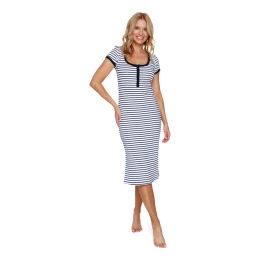 Noční košile 7242 Doctornap - bílá barva - z vysoce jakostní žebrované bavlny - s pruhy - krátké rukávy - výstřih se zapínání na patentky - kontrastní lemování - rozparky na bocích - certifikát OEKO-TEX Standard 100
