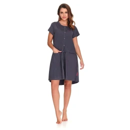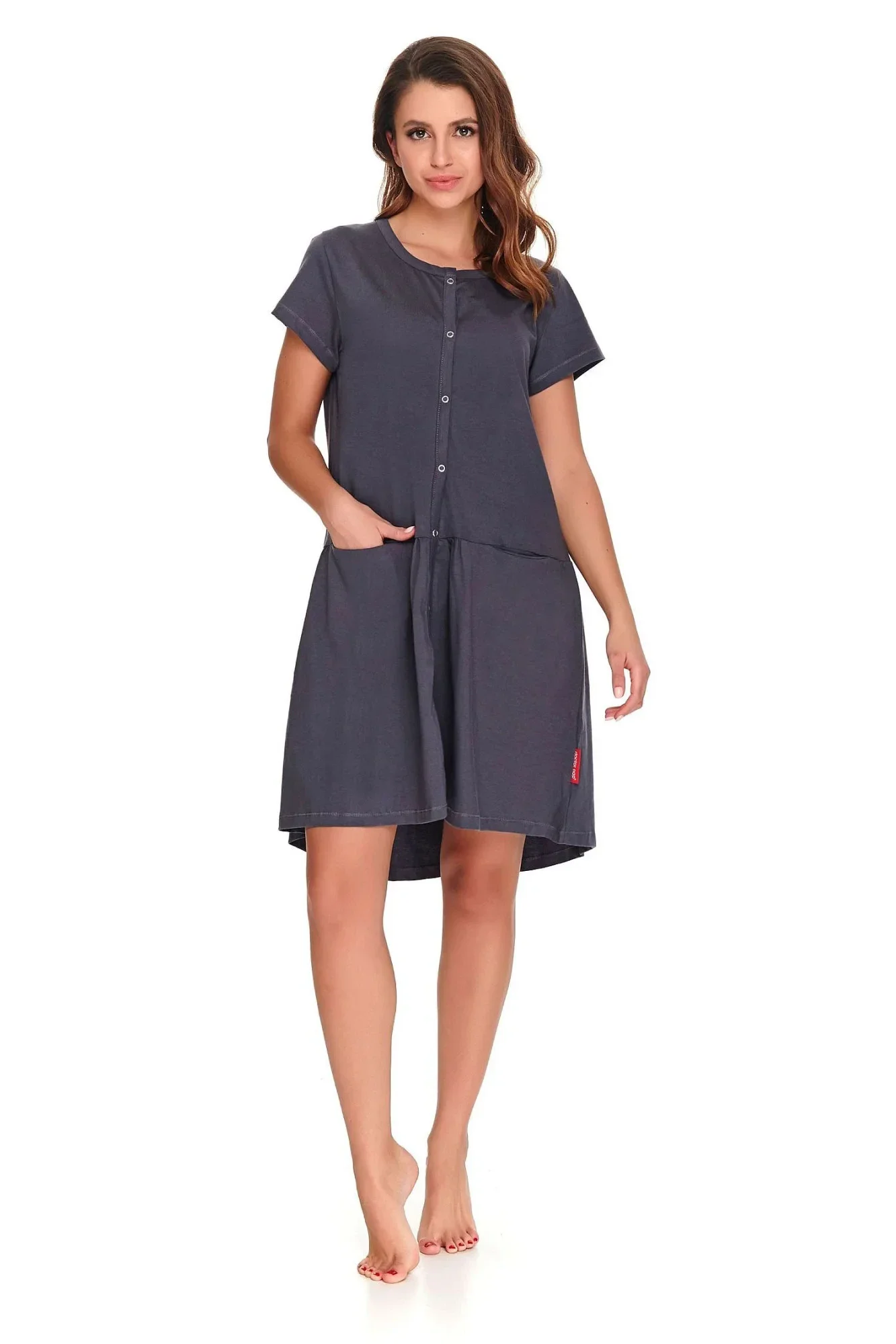 Dámská těhotenská košile 9445 graphite Doctornap - grafitová barva - z vysoce jakostní bavlny - s krátkými rukávy - zapínání na patentky - s kapsami - ideální pro těhotné a kojící ženy