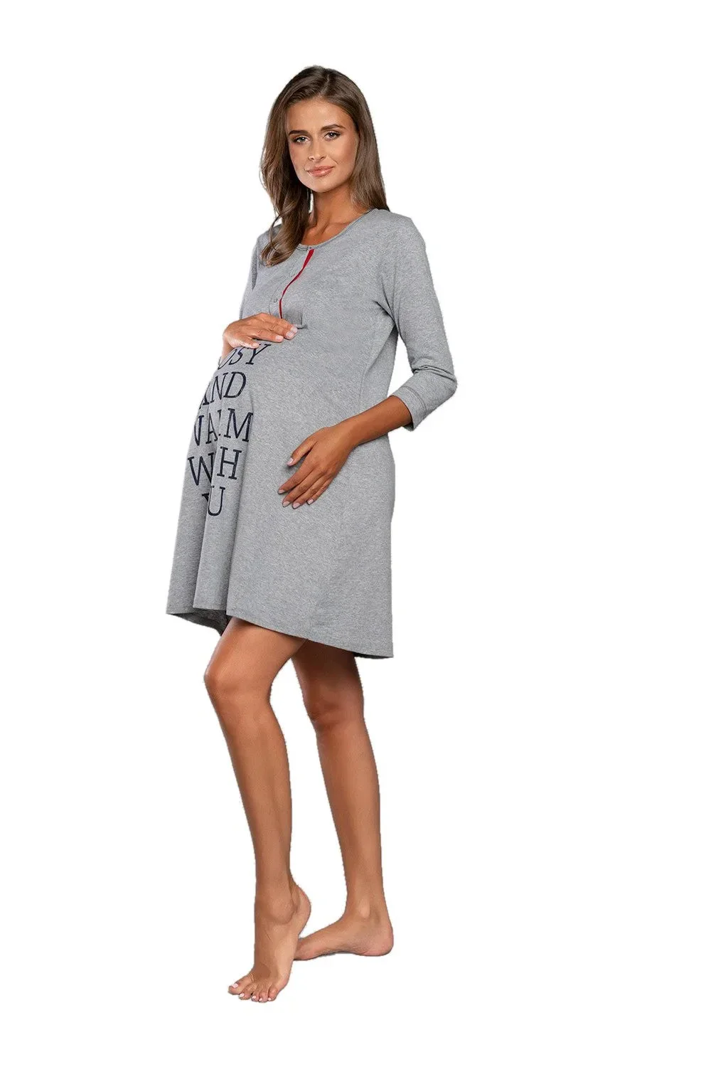 Dámská noční těhotenská košile Balsam Italian Fashion - je vyrobená z velmi kvalitní bavlny - má tříčtvrteční rukávy - výstřih ve tvaru písmene "V" se zapínáním na patentky - délka je nad kolena