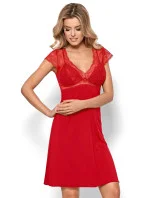 Dámská noční košilka Bianca red NIPPLEX - červená barva - z vysoce kvalitní viskózy - košíčky zdobené krajkou s květinovým motivem - krátké krajkové rukávy - délka nad kolena