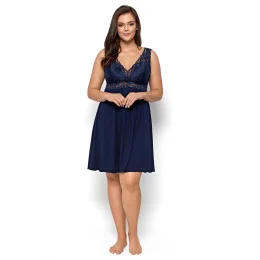 Noční košile Bona blue plus NIPPLEX - tmavě modrá barva - z vysoce kvalitní viskózy - výstřih zdobený ažurovou krajkou - mezi košíčky saténová mašlička - široká krajková ramínka - délka nad kolena