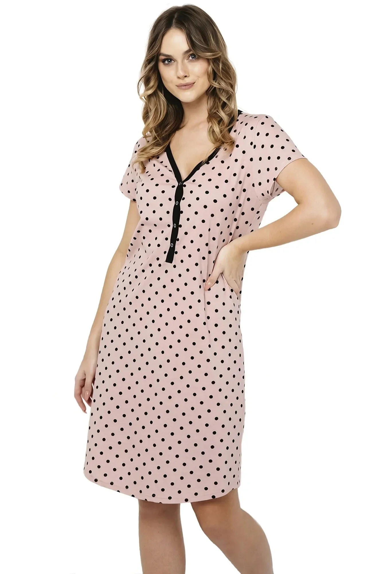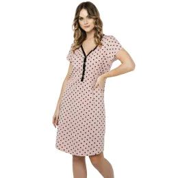 Noční košile Buscato plus ITALIAN FASHION - růžová barva - vyrobená z velmi kvalitní a příjemné bavlny - krátký rukáv - zapínání na patentky - s černými puntíky