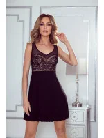 Noční košile Camila ELDAR - černá barva - vyrobená z velmi kvalitní viskózy - široká tylová ramínka - zdobená efektní krajkou