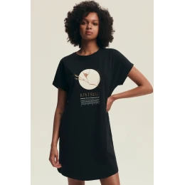 Przód koszuli zdobi oryginalny nadruk inspirowany japońską sztuką Kintsugi – filozofią celebrowania niedoskonałości i siły tkwiącej w naprawie. Luźny, lekko oversize’owy krój nie krępuje ruchów, gwarantując swobodę i wygodę przez całą noc.