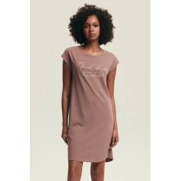 Na froncie znajduje się inspirujący nadruk z przesłaniem „Good days ahead”, który dodaje pozytywnej energii na każdy wieczór i poranek. Kobiecy krój z zaokrąglonym dołem oraz krótkimi rękawkami zapewnia swobodę ruchów i wygodę noszenia, idealną na każdą porę roku.