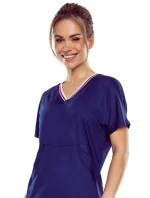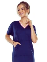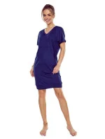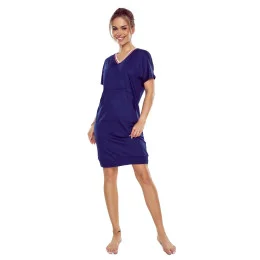 Noční košile Fleur blue ELDAR - tmavě modrá barva - z vysoce kvalitní bavlny - krátké rukávy - výstřih s barevným stahujícím lemem - kapsy na bocích