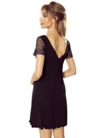 Noční košile Ismena ELDAR - černá barva - vyrobená z velmi kvalitní viskózy - krátké krajkové rukávy z ažurové krajky s květinovým motivem - výstřih z ažurové krajky
