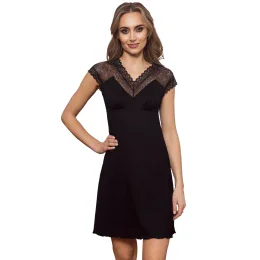 Noční košile Margaret plus ELDAR - černá barva - z vysoce kvalitní viskózy - krátké krajkové rukávy - horní část z krajkové aplikace