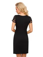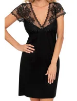 Noční košile Roxana black Donna - černá barva - z vysoce jakostní viskózy - krátké rukávy - dekolt a rukávy zdobené výšivkou s květinovým motivem