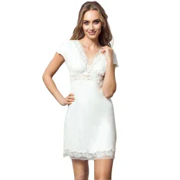 Noční košile Tracy cream ELDAR - krémová barva - z vysoce kvalitní viskózy - zdobená efektní krajkou s květinovým motivem - krátké rukávy