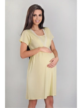 Tričko s krátkým rukávem, určené pro těhotné a kojící ženy. Košile je před kolena, díky použitým záhybům pod linií prsou se dokonale přizpůsobí bříšku. Model je laděn do pastelových barev.
