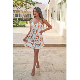 Krásná klasická noční košile ze vzorovaného saténu. Má tenká, nastavitelná ramínka, díky nimž je top lehký a odhaluje ramena. Výstřih do V. Volný, vzdušný, ženský a velmi pohodlný střih.