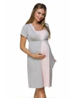 Tričko s krátkým rukávem, určené pro těhotné a kojící ženy. Košile je před kolena, díky použitým záhybům pod linií prsou se dokonale přizpůsobí bříšku. Model je laděn do pastelových barev.