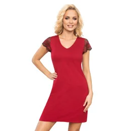 Klasická noční košile T!SSi 203 s přídavkem dvoubarevné krajky. Přiléhavý střih, zdůrazňující linie siluety, ve spodní části se mírně rozšiřuje. Široká ramínka jsou zakončena bohatě zdobenou krajkou, která vytváří barevný volný rukáv. Výstřih ve tvaru písmene V, nepříliš hluboký. Výrobek je zabalen v sáčku s fotografií.