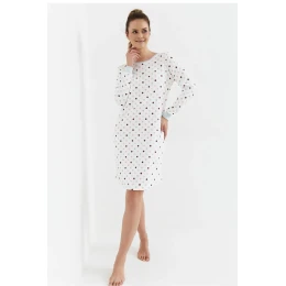Dámská noční košile z interlockové bavlny je pohodlný a stylový návrh pro klidný spánek. Vyrobená z měkkého a prodyšného materiálu s potiskem, zaručuje pohodlí a svěžest po celou noc. Polokruhový výstřih a volný, pohodlný střih zajišťují volnost pohybu, zatímco délka nad kolena dodává celku jemný půvab. Dlouhé rukávy s elastickým lemem dodávají košili moderní charakter a zároveň poskytují další pohodlí. Košile je zabalená v praktickém fóliovém sáčku, což ji činí skvělým dárkem.