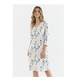 Dámská košile je elegantní a pohodlná volba na každý den. Vyrobená z měkké a prodyšné látky s potiskem, poskytuje pohodlí a svěžest po celý den. Výstřih do špičky jemně zdůrazňuje postavu, a rukávy 3/4 zakončené jemnou krajkou dodávají celku ženský šarm. Délka před kolena dává košili lehkost, čímž je ideální na teplejší dny.