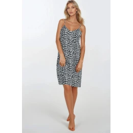 Elegantní noční košile s štíhlým, volným střihem, který zajišťuje maximální komfort nošení. Vyrobená z jemného viskózového materiálu, zdobená subtilním vzorem na kvalitní, vzorované pletenině. Nastavitelné ramínka umožňují dokonalé přizpůsobení. Model navržený a ušitý v Polsku, spojující ženský styl s pohodlím.