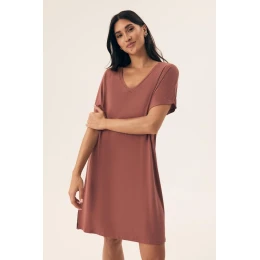 Elegantní a pohodlná noční košile vyrobena z jemné, hladké viskózy, která příjemně obepíná tělo a poskytuje pohodlí po celou noc. Volný střih a délka po kolena zaručují volnost pohybu, zatímco krátký rukáv a V výstřih dodávají celku lehkost a ženský půvab. Produkt je dodáván v praktickém plastovém sáčku, ideální i jako dárek.