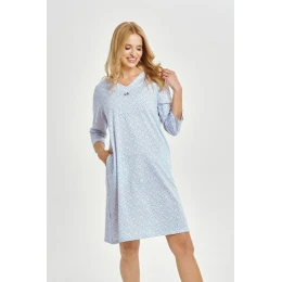 Noční košile vyrobena z měkké, příjemné na dotek bavlny, která poskytuje pohodlí a volnost během spánku. Model s 3/4 rukávem a výstřihem ve tvaru písmene V, zdobený jemnou saténovou mašlí, kombinuje eleganci a praktičnost. Košile je zdobena jemným květinovým motivem, který dodává celku lehký a ženský charakter. Délka sahající po kolena a volný střih zaručují plnou volnost pohybu a pohodlí nošení. Navíc praktické kapsy zvyšují funkčnost a pohodlí používání, činíce z košile ideální nabídku jak na spánek, tak i domácí relaxaci.