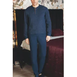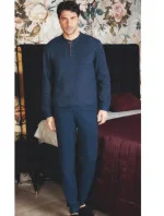 Pánské pyžamo ušité z měkkého úpletu.. Tričko s dlouhým rukávem a kapsou na přední straně. S dlouhými kalhotami. Výstřih, manžety a spodní část košile a kalhot jsou zakončeny pohodlným žebrovaným lemem.