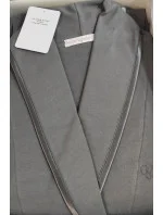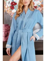 Dámský župan s límcem a kapsami, vyrobený z bavlny. Vázání v pase. Zakončené jemnou lamów. Jemná krajka na rukávech. K dispozici ve dvou barevných provedeních.