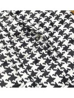 Bunda je lehce zateplená syntetickou péřovou výplní. Jedna strana bundy je hladká a druhá je lehce prošívaná. Model má kapuci, kterou není možné odepnout. V pase modelu je vzadu guma. Na každé straně bundy jsou dvě kapsy. Všechny zipy a patentky mají stříbrnou barvu.