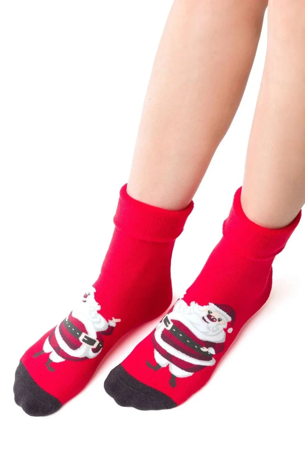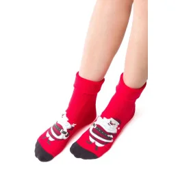 Dámské ponožky 030 041 Steven - červená barva - z vysoce kvalitní froté bavlny - vánoční motiv - měkké a hřejivé - přehnutý horní lem