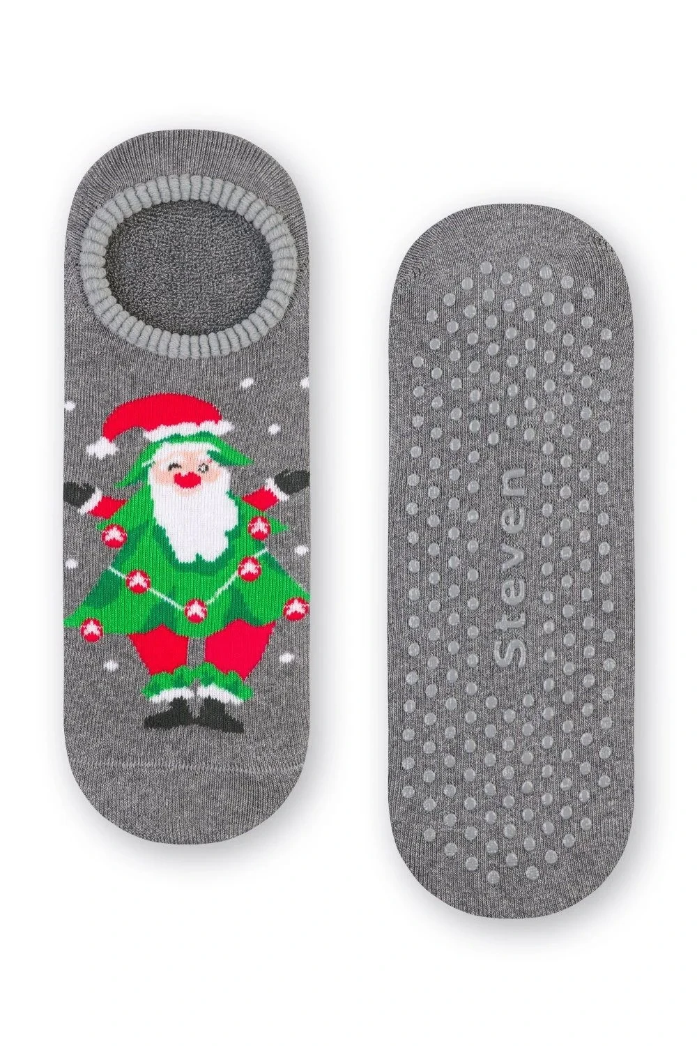 Obrázkové ponožky 132-2 Steven - šedá barva - vyrobené z vysoce jakostní bavlny - froté ponožky s protiskluzovou podešví - měkké, teplé, pohodlné a ideální pro chladné dny - vánoční kolekce