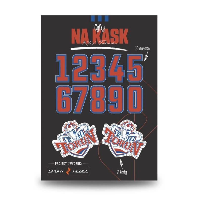 KHT Torun Helmet Numbers KHT Torun Helmet Numbers je sada vysoce kvalitních samolepek vytvořená pro hokejisty a fanoušky, kteří si chtějí přizpůsobit svou výstroj v barvách svého milovaného klubu. klíčové vlastnosti:Oficiální design:Sada obsahuje číslice od 0 do 9 v klubových barvách s jasným obrysem.Vysoká kvalita tisku:Samolepky jsou odolné vůči vlhkosti a oděru, takže jsou ideální pro zápasy a tréninky.Další erby:Sada je doplněna 2 samolepkami s oficiálním klubovým znakem KHT Torun.KHT Torun Helmet Numbers je perfektní způsob, jak ukázat svou klubovou příslušnost na ledě i mimo něj!