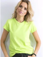 Základní tričko Fluo green Peachy. Hladké bavlněné tričko by si bezpochyby mělo najít cestu do šatníku každé ženy. Je to již železná klasika, která umožňuje módní, ale zároveň minimalistický a univerzální vzhled, který si můžete upravit podle svého vkusu. Koneckonců základní trička jsou ideálním výchozím bodem pro vytváření dalších vzhledů, protože se hodí k většině oblečení. Tento model má klasické krátké rukávy a oblíbený kulatý výstřih, takže se pohodlně nosí a je pohodlný. Díky svému univerzálnímu střihu je skvělá po celý rok. Toto dámské tričko je vyrobeno ze směsi materiálů složené z čisté bavlny a malého podílu elastanu. Díky tomu je tričko prodyšné a příjemné na těle, takže ho budete chtít nosit neustále!