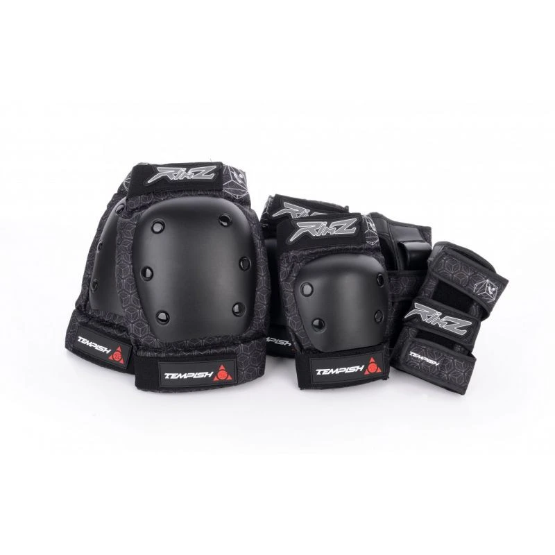 Chrániče: TEMPISH Rimz 3-dílné chrániče Klasická sada tří chráničů (kolena, lokty, zápěstí) pro agresivní skateboarding, longboarding, scootering. freestyle. Chránič zápěstí: je tradiční konstrukce s plastovou výztuhou zápěstí na obou stranách.