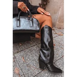 Dámské kozačky ve stylu cowboy vyrobené z eko kůže jsou ideční volbou pro ženy, které ocení módní vzhled spojený s pohodlím. Charakteristický střih inspirovaný západním stylem dodává výjimečný ráz. Model je osazen na stabilním, zkráceném podpatku typu sloupek, který nejenže přidá několik centimetrů výšky, ale také zajišťuje komfort a jistotu při chůzi. Špičaté nosy zvýrazňují ženský styl, opticky zeštíhlují nohu a praktické zapínání na zip usnadňuje obouvání a sundávání. Jsou to boty, které se skvěle hodí jak k běžnému, tak i elegantnímu outfitu – dobře se kombinují s šaty, sukněmi nebo přiléhavými kalhotami, vytvářejí působivý módní vzhled. Při výběru velikosti prosím řiďte se tabulkou velikostí. Při výběru velikosti se řiďte tabulkou velikostí.