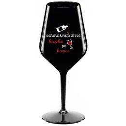 OCHUTNÁVÁM ŽIVOT KAPKU PO KAPCE - černá nerozbitná sklenice na víno 470 ml