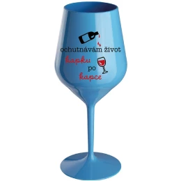 OCHUTNÁVÁM ŽIVOT KAPKU PO KAPCE - modrá nerozbitná sklenice na víno 470 ml
