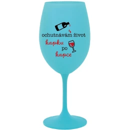 OCHUTNÁVÁM ŽIVOT KAPKU PO KAPCE - tyrkysová sklenice na víno 350 ml
