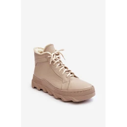 Ocieplané Kožené Boty Dámské Na Platformě Bežové Lemar Jevette