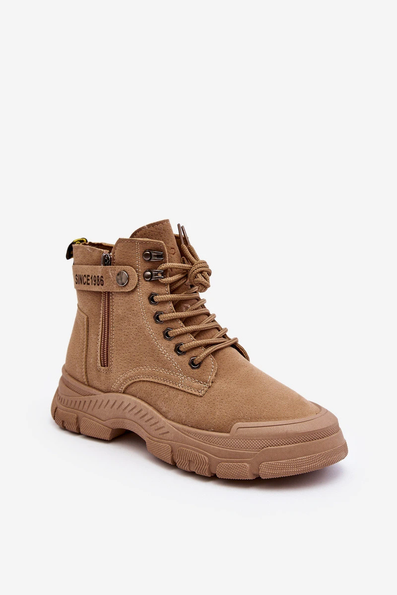 Ocieplené semišové dámské botky traperky béžové Jailina