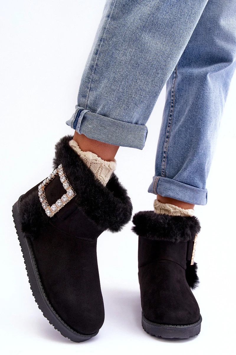 Módní sněžnice jsou ideální pro podzimně-zimní sezónu. Vnitřek je zateplený hrubou kožešinou. Na špičce je ozdoba ve formě spony. Klasický vzor, který se hodí k mnoha stylům. Vyrobeno z eko semišu. Tento model je ideální pro ty, kteří si cení pohodlí a teplo v chladných dnech! Prostě je musíte mít! Při výběru velikosti se řiďte tabulkou velikostí.