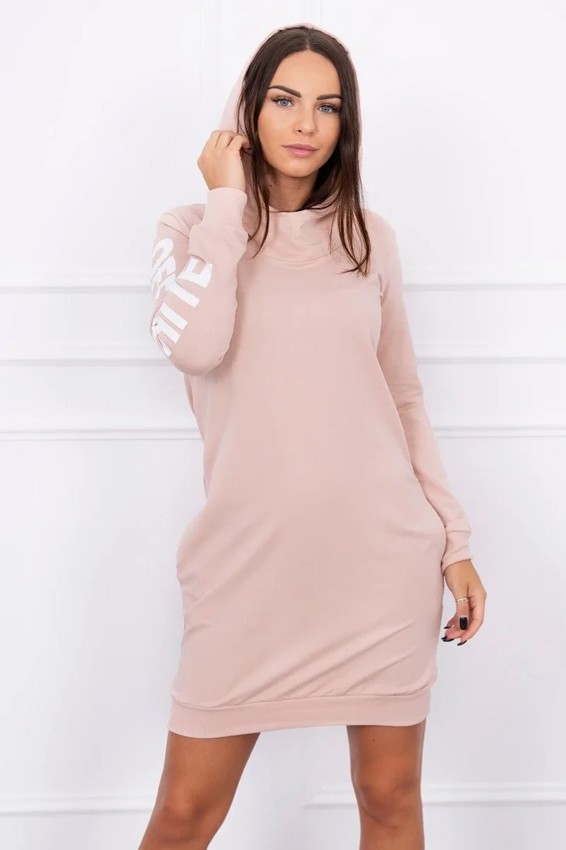 Představujeme vám módní šaty. Šaty s kapucí a nápisem na rukávu off white. Šaty mají kapsy. Šaty jsou vyrobeny z vysoce kvalitního materiálu. Velikost je univerzální a vyhovuje dámám, které nosí velikost S, M nebo L.