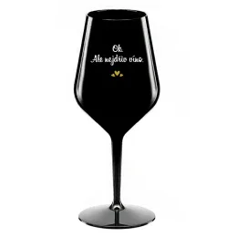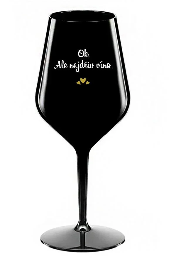 OK, ALE NEJDŘÍV VÍNO. - černá nerozbitná sklenice na víno 470 ml