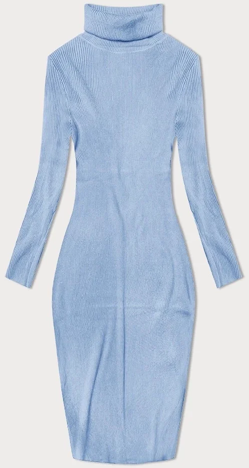 Šaty jsou vyrobené z pružného materiálu příjemného na dotyk, mají rolák a dlouhé rukávy. Model má délku nad kolena.